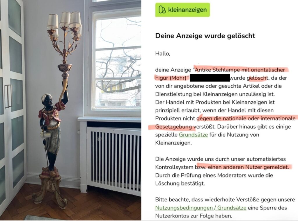 Eine Frage habe ich jedoch an die ach so hochgebildeten Moderatoren von Instagram: gegen welches nationale, besonders internationale Gesetz hat die Kleinanzeige verstoßen?