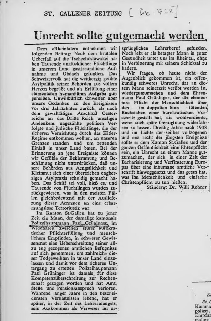 Die Strafe kam, wie er es geahnt haben muss. Er verlor seinen Posten, sein Einkommen und den Respekt vieler, die ihn früher als pflichtbewussten Beamten geschätzt hatten, während diejenigen, deren Leben er gerettet hatte, oft in der Fremde neu anfangen mussten, mit der Schuld der Überlebenden und der Trauer um Ermordete im Gepäck. Statt Auszeichnungen erhielt er einen Strafbefehl, statt Dankbarkeit das Stigma des „Gesetzesbrechers“ – und doch lebten irgendwo Kinder, die Bar‑Mizwa feiern konnten, Großeltern, die Geschichten weitererzählten, Familien, die jüdisches Leben in anderen Ländern fortsetzten, weil an der St. Galler Grenze ein einzelner Polizist Menschlichkeit über Vorschriften stellte.ppl-ai-file-upload.s3.amazonaws+1