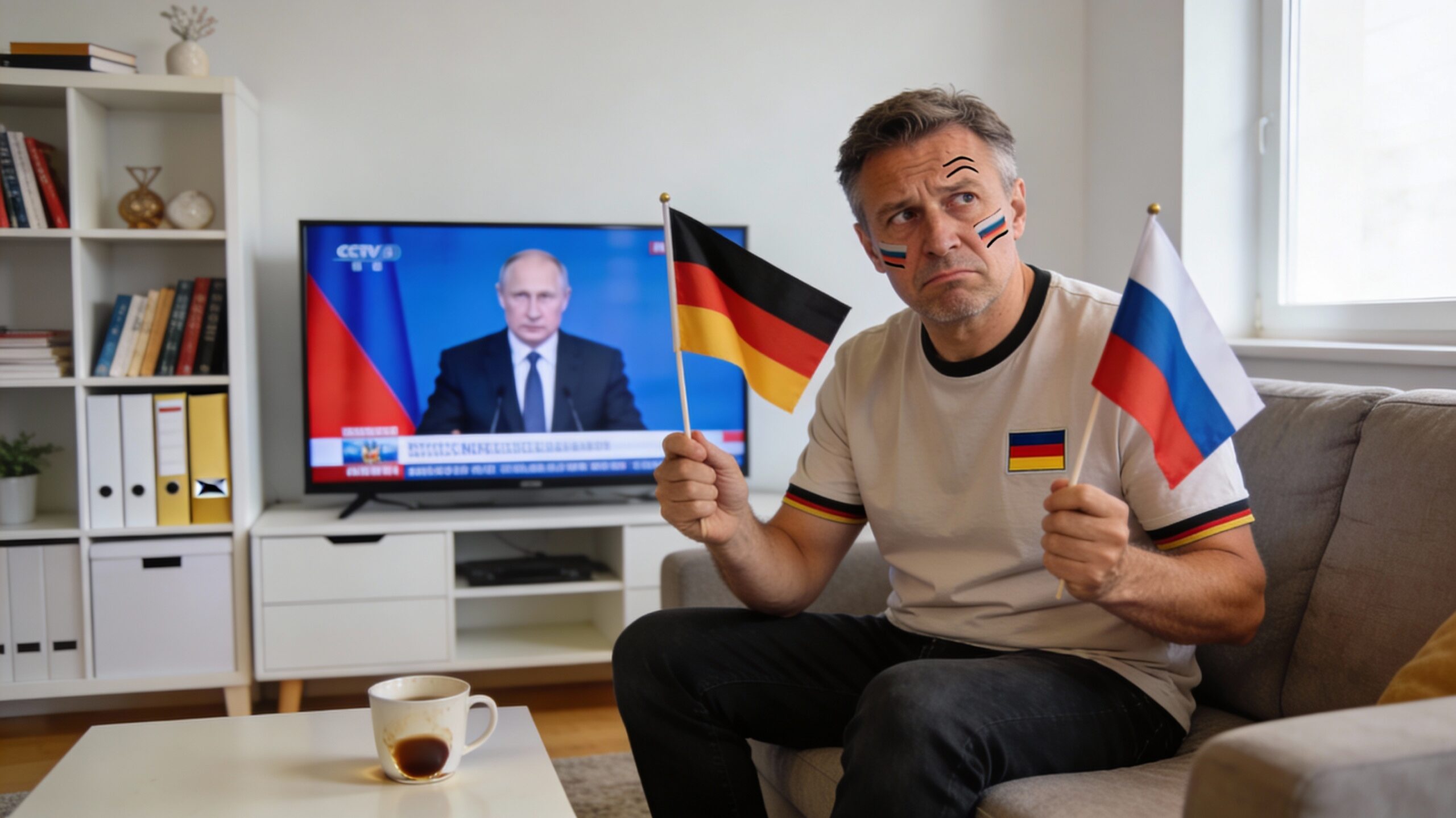 Und es kommt noch schöner: Manche haben Russland verlassen, weil sie dort als Deutsche nie ganz dazugehört haben. In Deutschland merken sie dann: Oh, hier gehört man auch nicht automatisch dazu. Und statt zu sagen „Dann baue ich mir hier mein Leben auf“, passiert manchmal das: Man erklärt Deutschland zum Hauptproblem — und Russland zum Opfer. Russland! Das Land, das in seiner Freizeit Oppositionelle wegsperrt, Medien gängelt und Nachbarländer „befreit“, indem es sie in Trümmer legt.